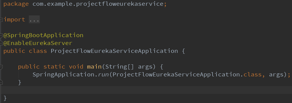 然后想要启动一个注册中心只要在application.properties中进行端口等的配置 server.port=8761 eureka: instance: hostname: localhost client: registerWithEureka: false fetchRegistry: false serviceUrl: defaultZone: http://${eureka.instance.hostname}:${server.port}/eureka/ spring.application.name=eurka-server