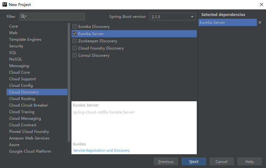 这里选择Eureka Server可以直接在项目的pom文件中加入Eureka的jar包