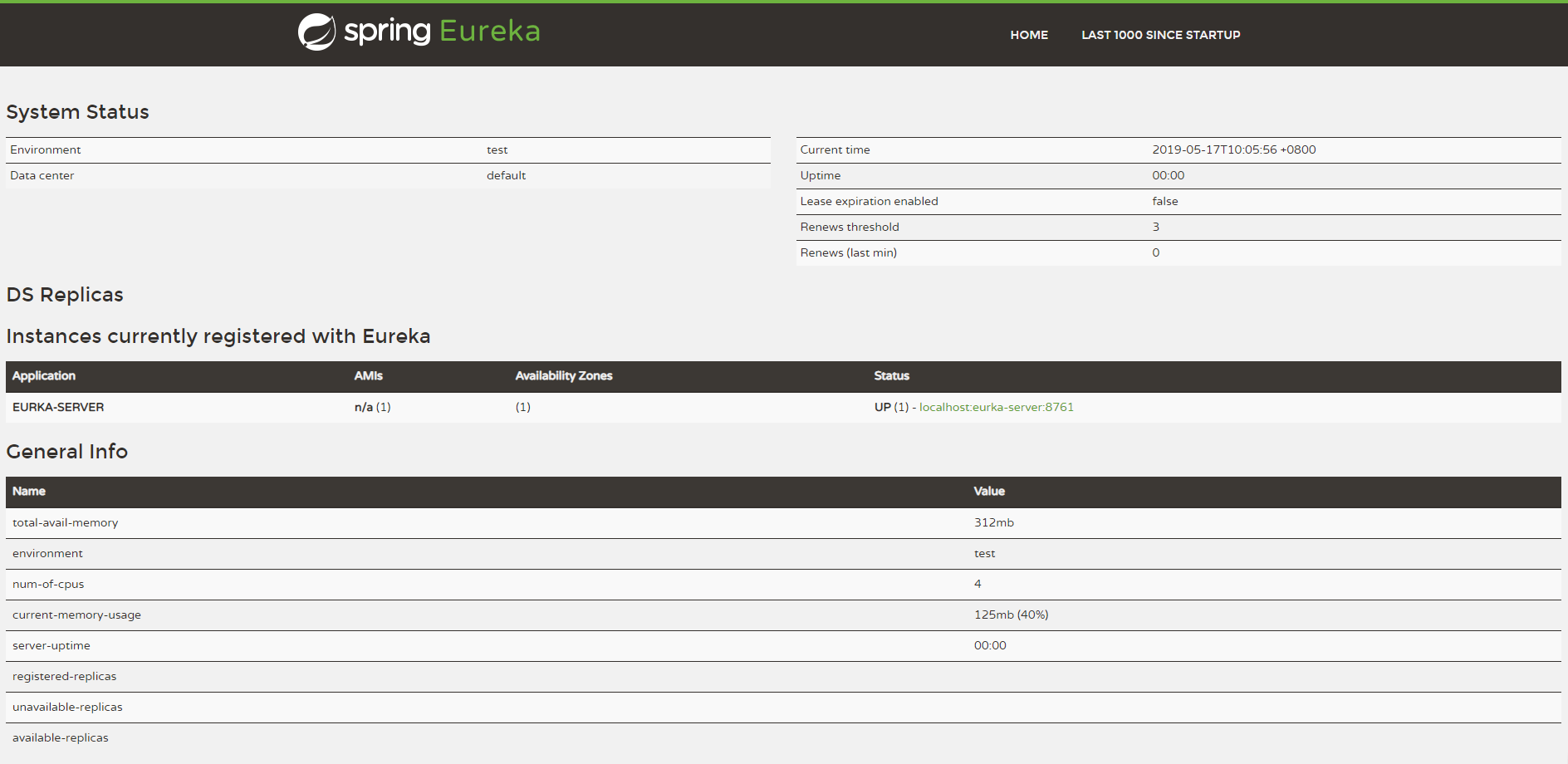 启动之后,可以在浏览器进行访问:localhost:8761